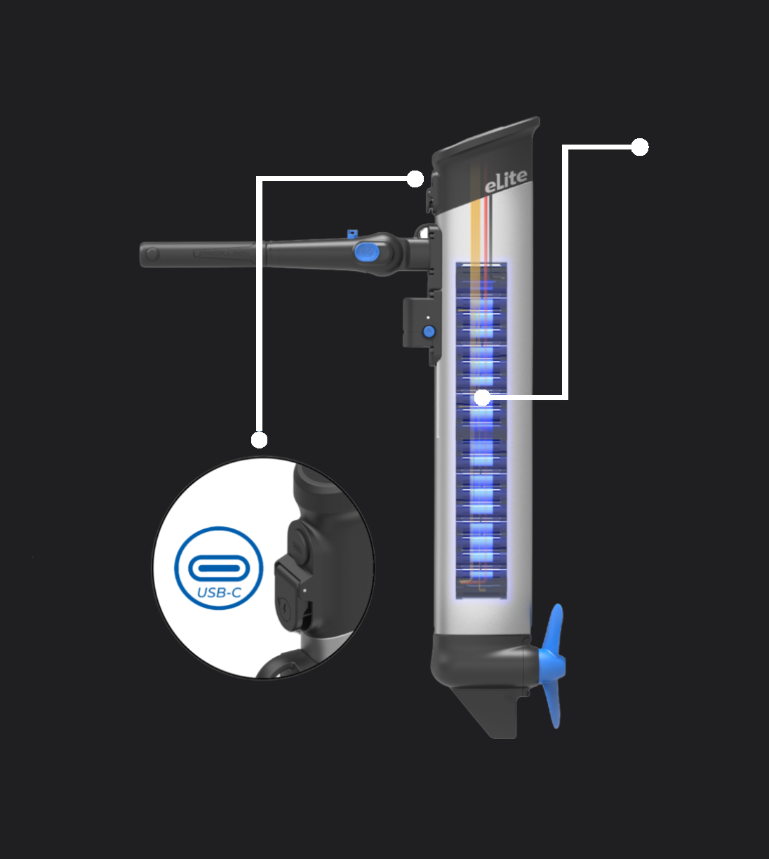 Ausgestattet mit einem intelligenten Batterie-Management-System gewährleistet sie einen energieeffizienten Betrieb und verlängert die Batterielebensdauer. Ein USB-C-Ausgang ermöglicht das Laden und Versorgen anderer elektrischer Geräte, während die Batterie mehrere Ladeoptionen unterstützt: Neben dem standardmäßigen220 V Wechselstrom können auch 12 V Gleichstrom und Solarenergie über optionales ePropulsion-Zubehör genutzt werden.